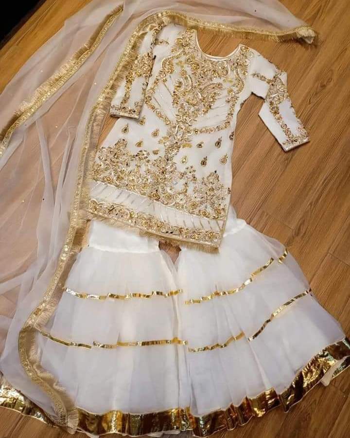 This white stitched bridal dress symbolizes purity and elegance — perfect for a serene Nikah ceremony look.